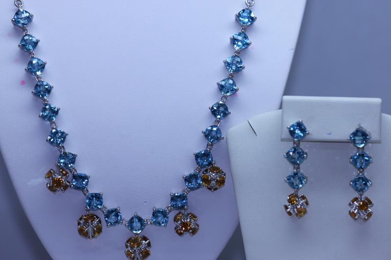 201.40 CTW BLUE TOPAZ AND CITRINE NECKLACE AND EARRING **|**|** 201.40 CTW BLUE TOPAZ AND CITRINE NECKLACE AND EARRING SET .925 STERLING SILVER ; MSRP: $3240