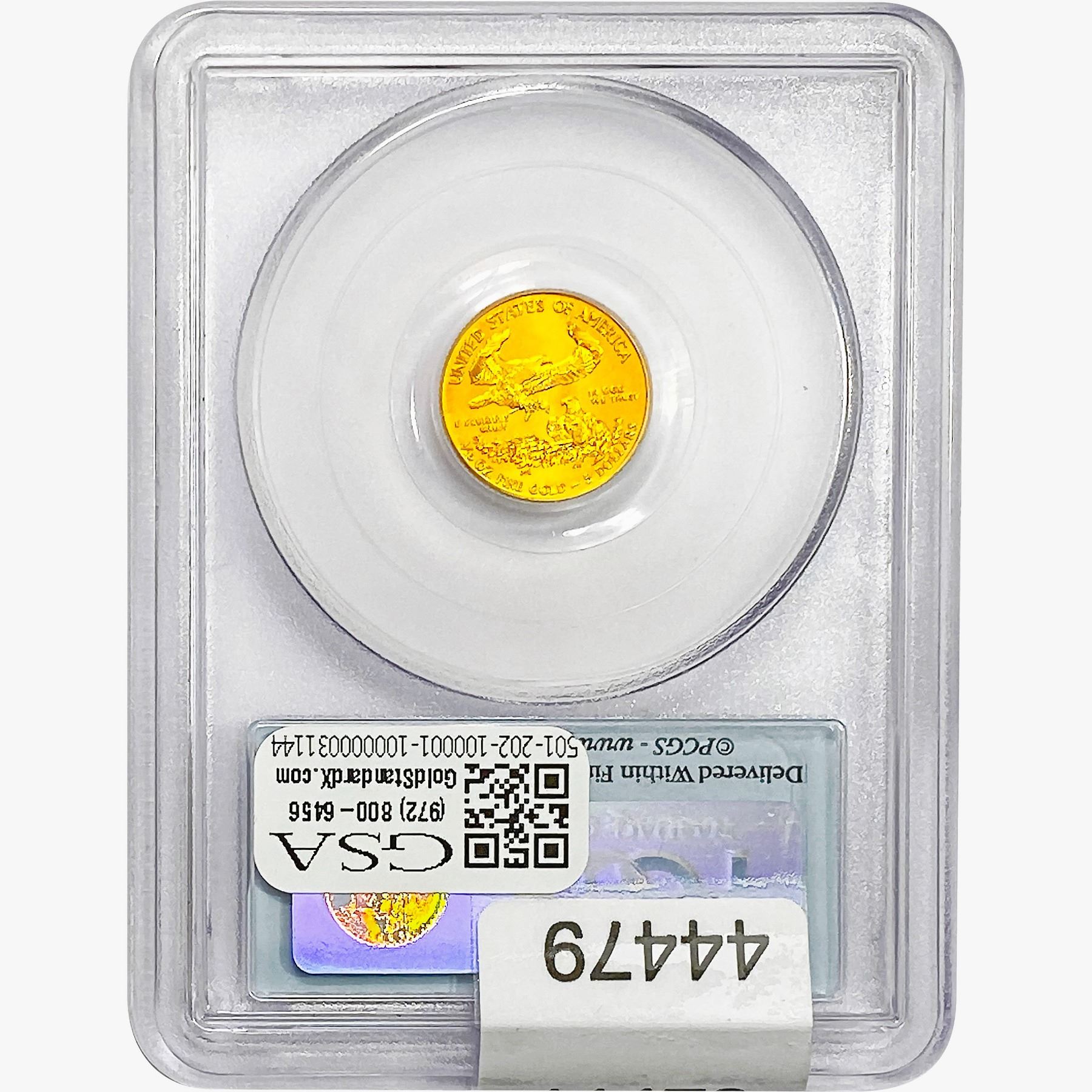 e. Coins sold referencing a third-party grading service are sold “AS IS” without any express or implied warranty, except for a guarantee by GSA that they are genuine. Removal or alteration of the holder, voids all of Bidder’s claims concerning that Product. Certain warranties may be available from the grading services and Bidders are referred to them for further details: Numismatic Guaranty Corporation (NGC), PO Box 4776, Sarasota, FL 34230, www.ngccoin.com/services/writtenguarantee.asp; Professional Coin Grading Services (PCGS), PO Box 9458, Newport Beach, CA 92658, www.pcgs.com/guarantee.html; ANACS, 6555 S. Kenton St., Ste. 303, Englewood, CO 80111; and Independent Coin Grading Co. (ICG), 7901 East Bellview, Ave., Suite 50, Englewood, CO 80111.