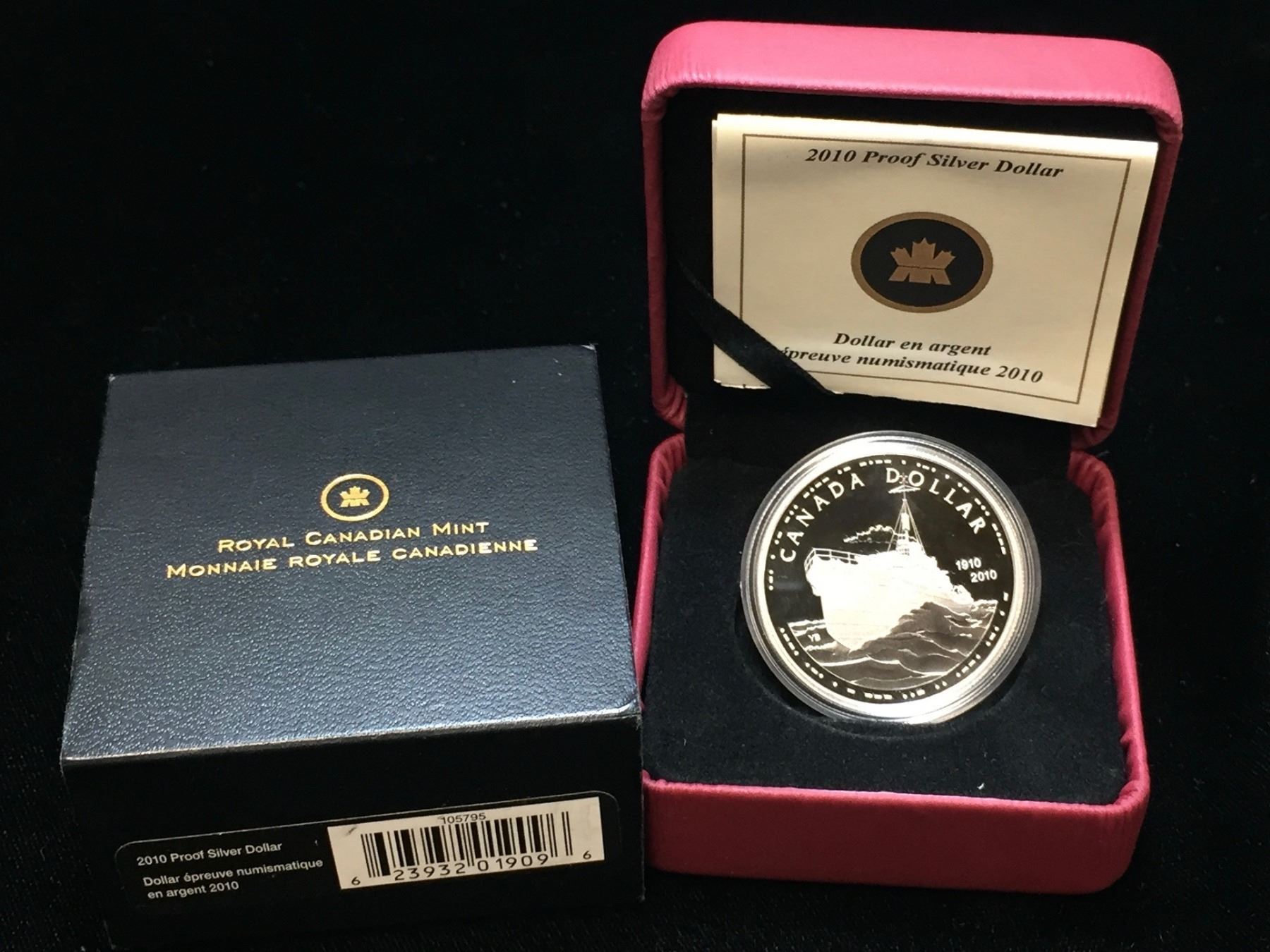 Lot 45; Fine Silver .9999 2010 $1 100th Anniversary of the Canadian Navy Proof Silver Dollar, Proof Finish, Includes COA and RCM Packing