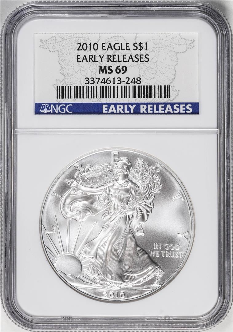 One 2010 $1 American Silver Eagle Coin NGC MS69 Early Releases. NGC Certified.