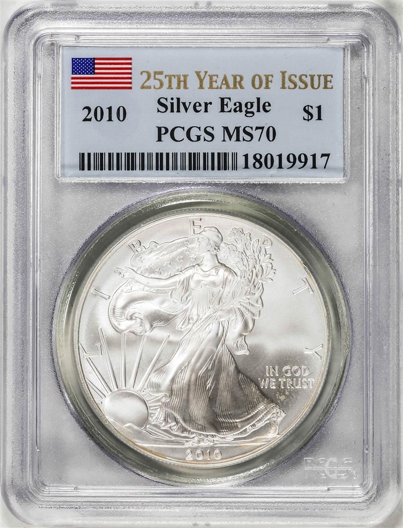 2010 $1 American Silver Eagle Coin PCGS MS70 25th Year of Issue
