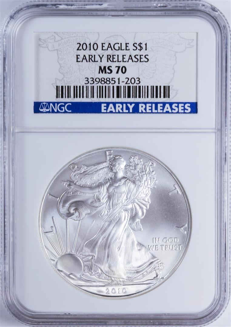 One 2010 $1 American Silver Eagle NGC MS70 Early Releases.