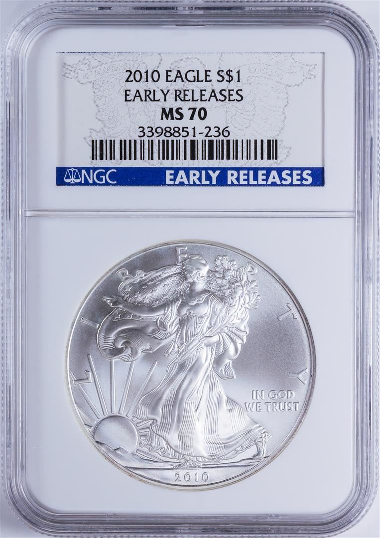 One 2010 $1 American Silver Eagle NGC MS70 Early Releases.