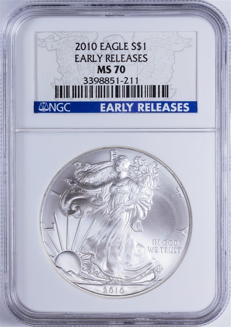 One 2010 $1 American Silver Eagle NGC MS70 Early Releases.