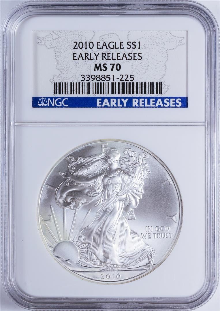 One 2010 $1 American Silver Eagle NGC MS70 Early Releases.