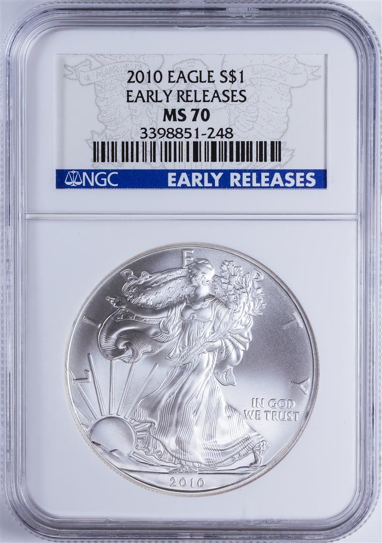 One 2010 $1 American Silver Eagle NGC MS70 Early Releases.