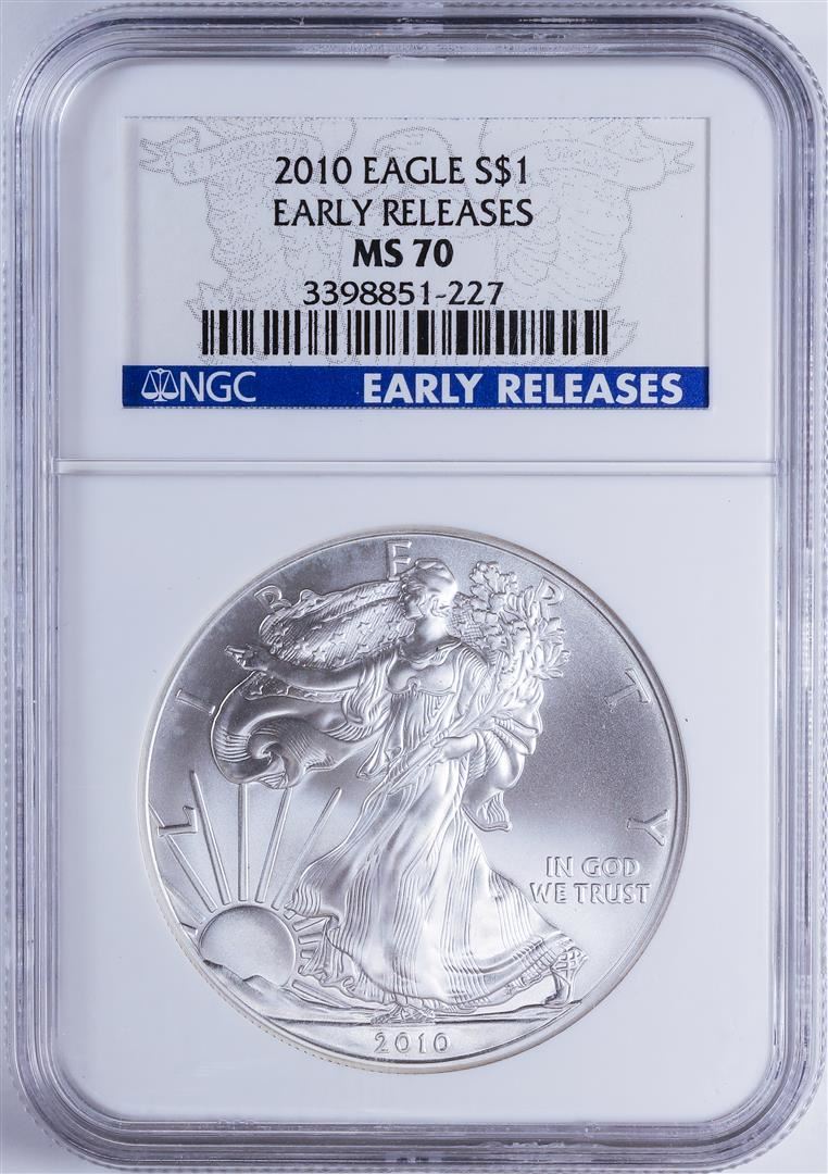 One 2010 $1 American Silver Eagle NGC MS70 Early Releases.