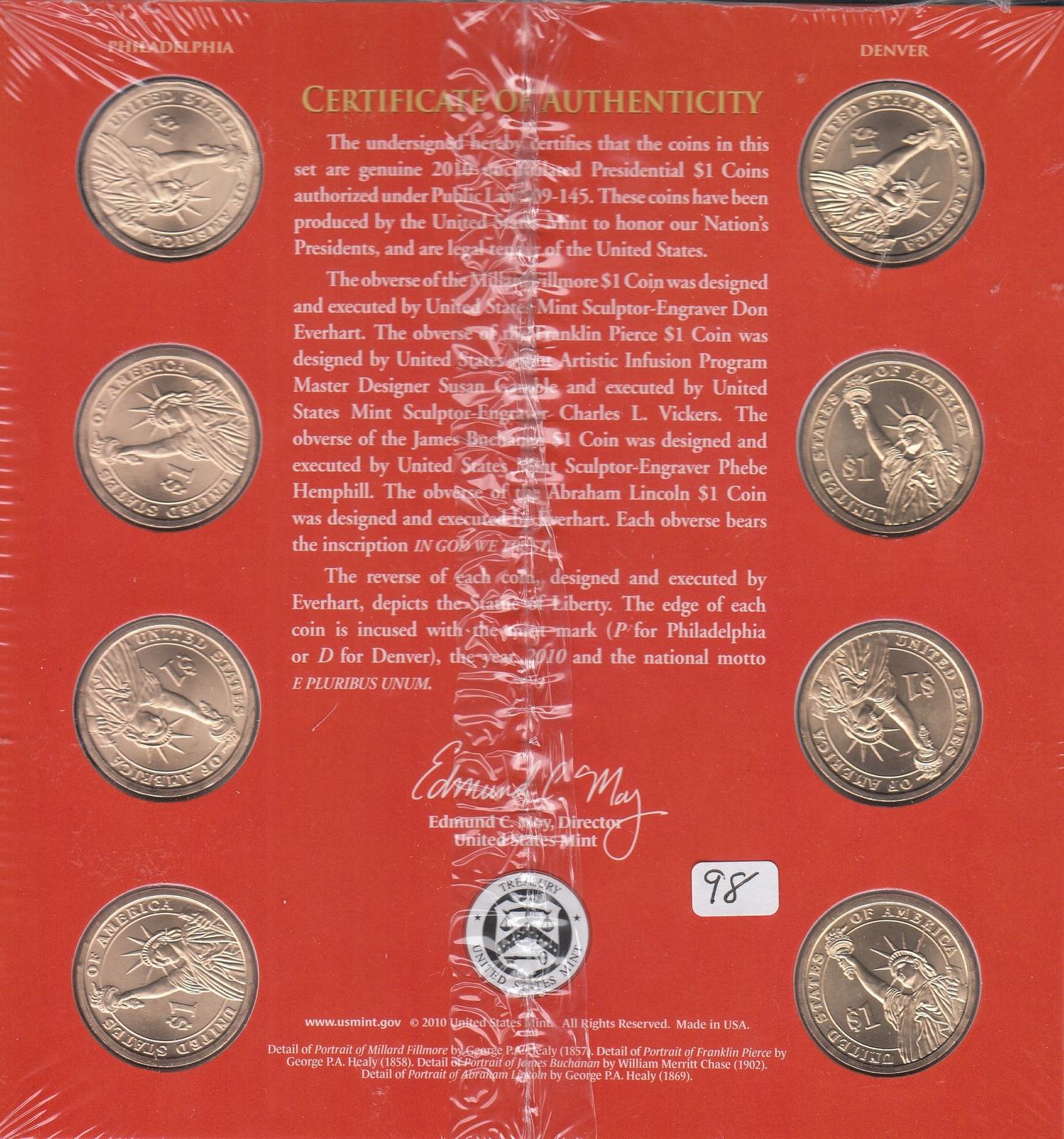 2010 $1 PRESIDENTIAL SET 8 $1 COINS