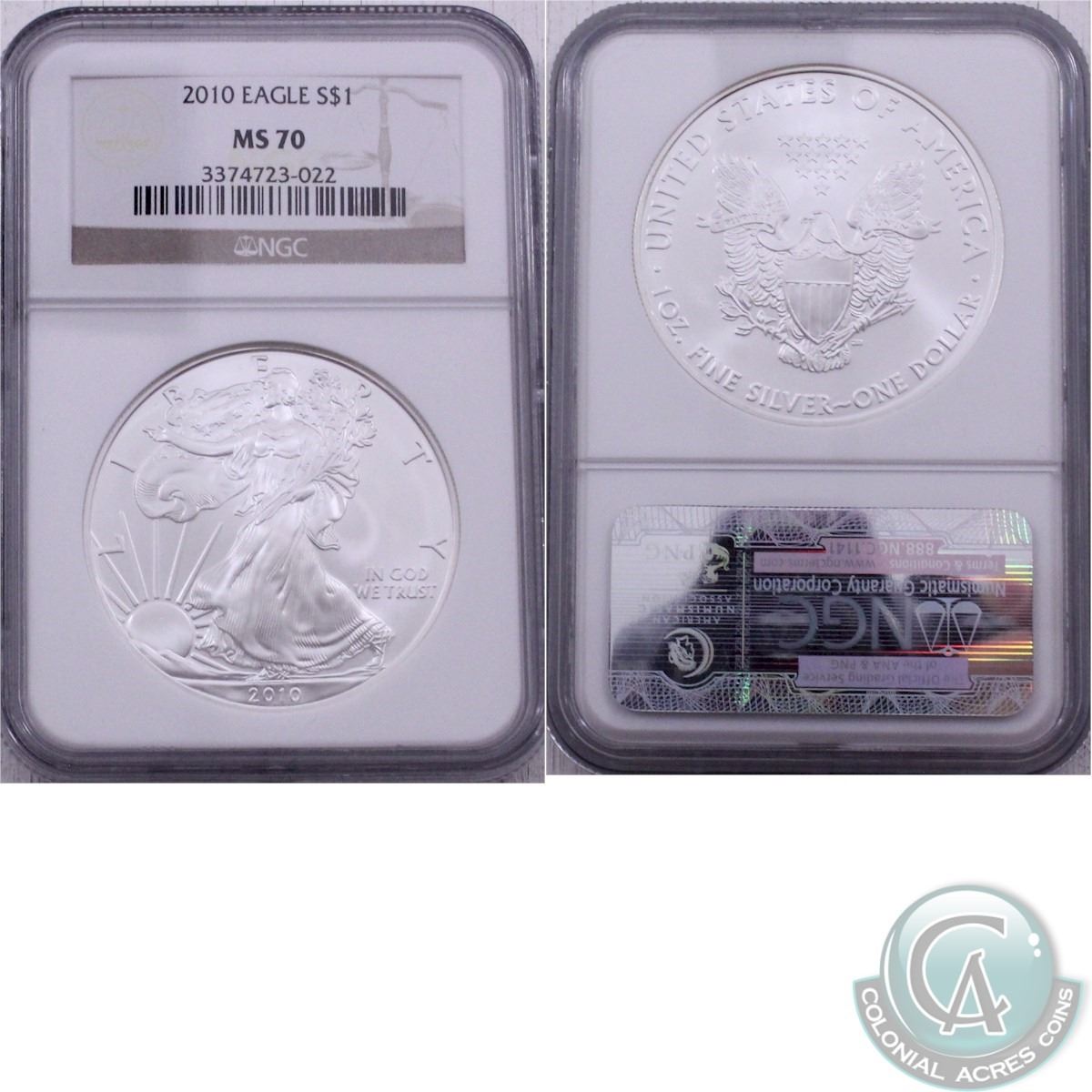 2010 $1 Silver Eagle 1oz Fine Silver NGC Certified MS-70. (Tax Exempt)