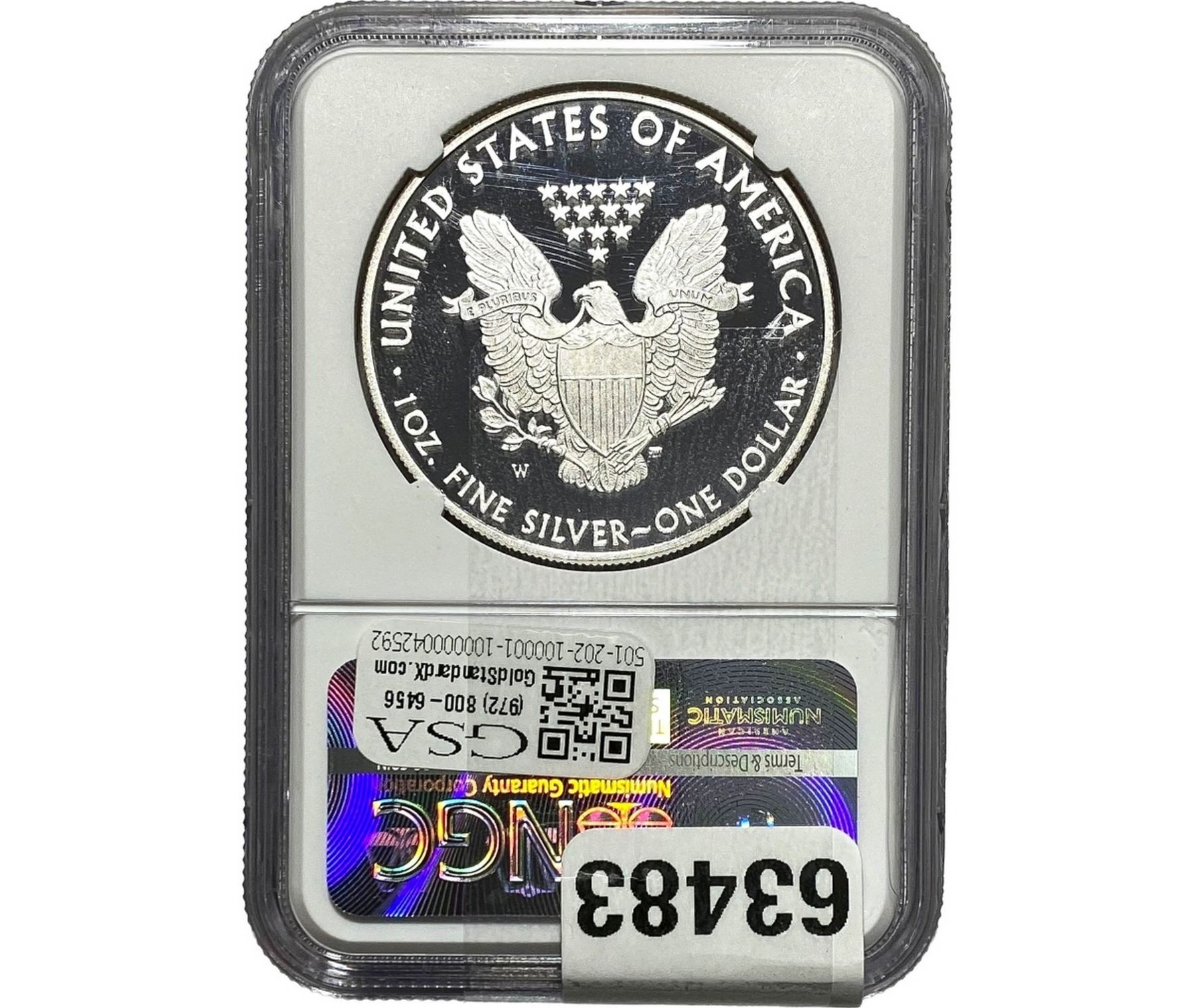 e. Coins sold referencing a third-party grading service are sold “AS IS” without any express or implied warranty, except for a guarantee by GSA that they are genuine. Removal or alteration of the holder, voids all of Bidder’s claims concerning that Product. Certain warranties may be available from the grading services and Bidders are referred to them for further details: Numismatic Guaranty Corporation (NGC), PO Box 4776, Sarasota, FL 34230, www.ngccoin.com/services/writtenguarantee.asp; Professional Coin Grading Services (PCGS), PO Box 9458, Newport Beach, CA 92658, www.pcgs.com/guarantee.html; ANACS, 6555 S. Kenton St., Ste. 303, Englewood, CO 80111; and Independent Coin Grading Co. (ICG), 7901 East Bellview, Ave., Suite 50, Englewood, CO 80111.