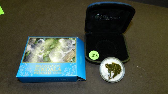 2010 1 oz Gilded Silver Koala Coin - with Box and Certificate