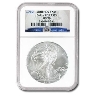 2010 1 oz Silver American Eagle MS-70 NGC 25th Annivers **|**|** 2010 1 oz Silver American Eagle MS-70 NGC 25th Anniversary (ER) ; MSRP: $400