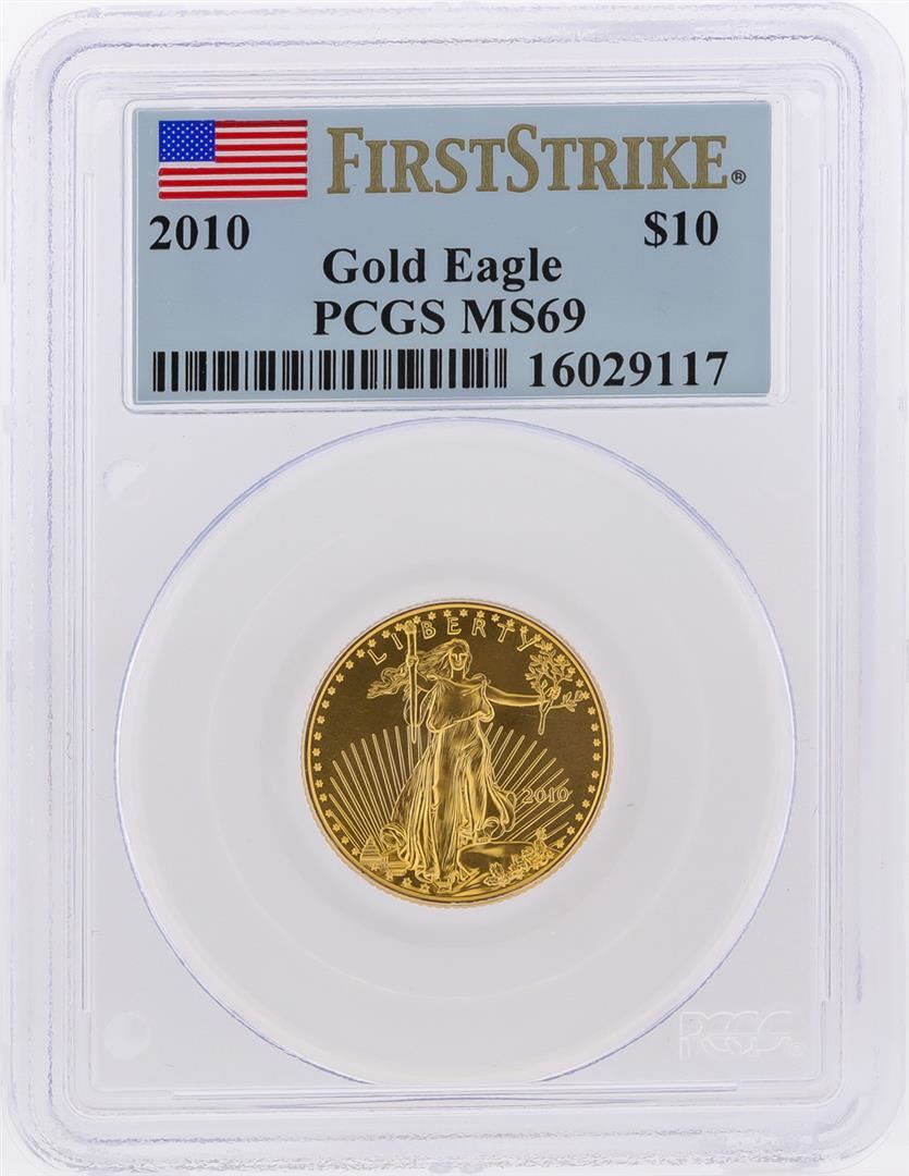 One 2010 $10 American Gold Eagle First Strike Coin PCGS Graded MS69. PCGS Graded.
