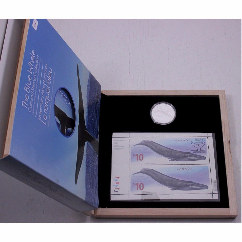 2010 $10 Sterling Silver Blue Whale Coin and Stamp Set issued by the Royal Canadian Mint
