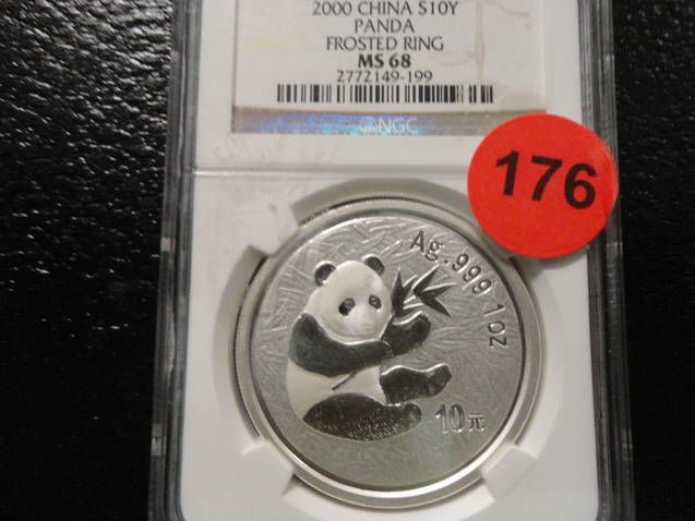 2010 $10Y 1 OZ PURE SILVER CHINESE PANDA FROSTED RING NGC MS-68