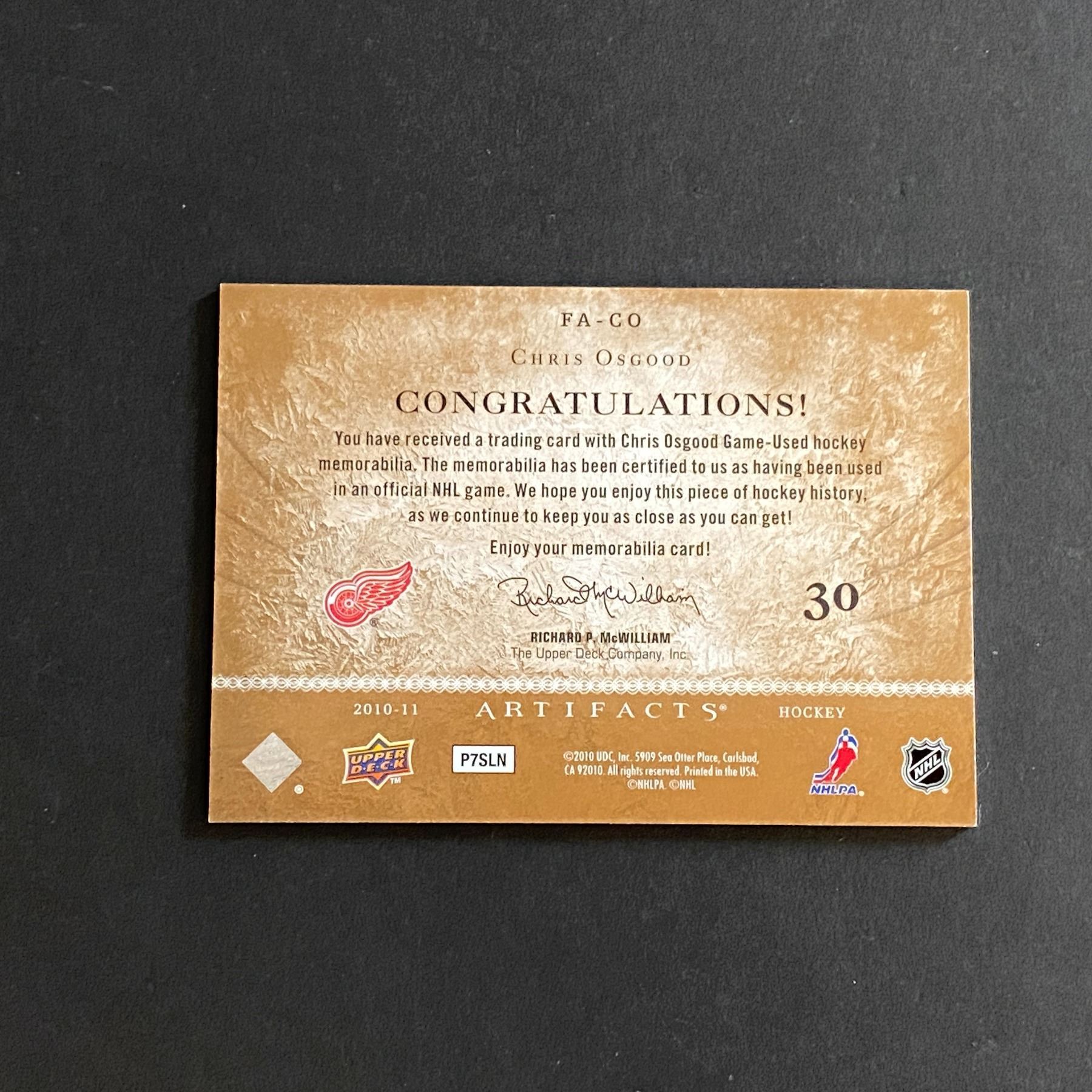 2010-11 ARTIFACTS HOCKEY CHRIS OSGOOD DUAL JERSEY CARD ONLY 150 MADE #065/150