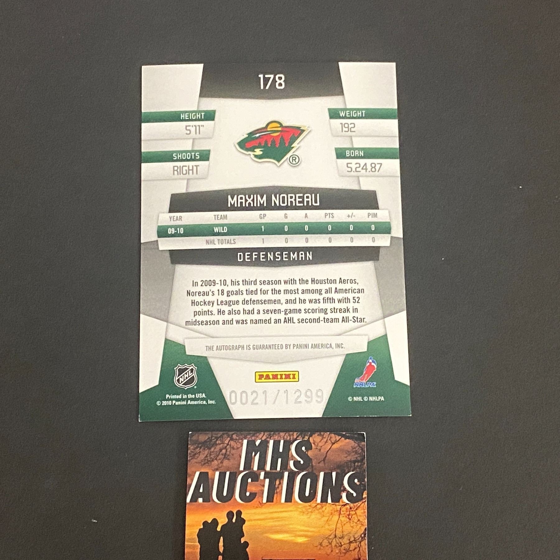 2010-11 CERTIFIED AUTOGRAPH MAXIM NOREAU 0021/1299 N.H.L AUTOGRAPH CARD