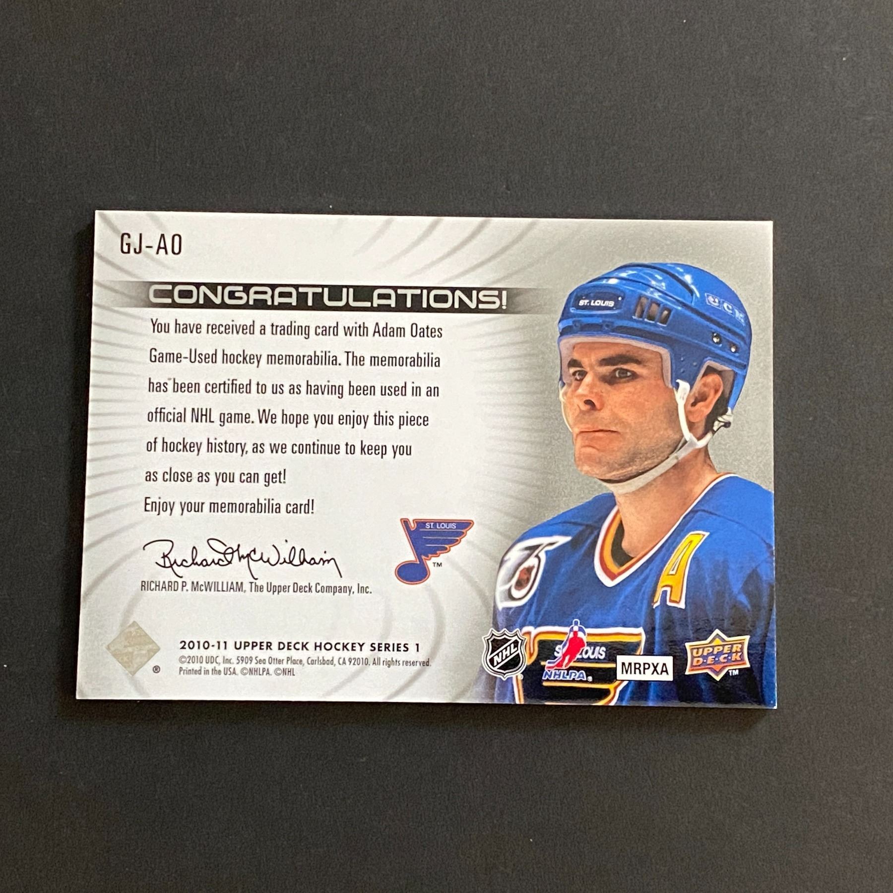 2010-11 U.D SERIES 1 HOCKEY ADAM OATES JERSEY CARD