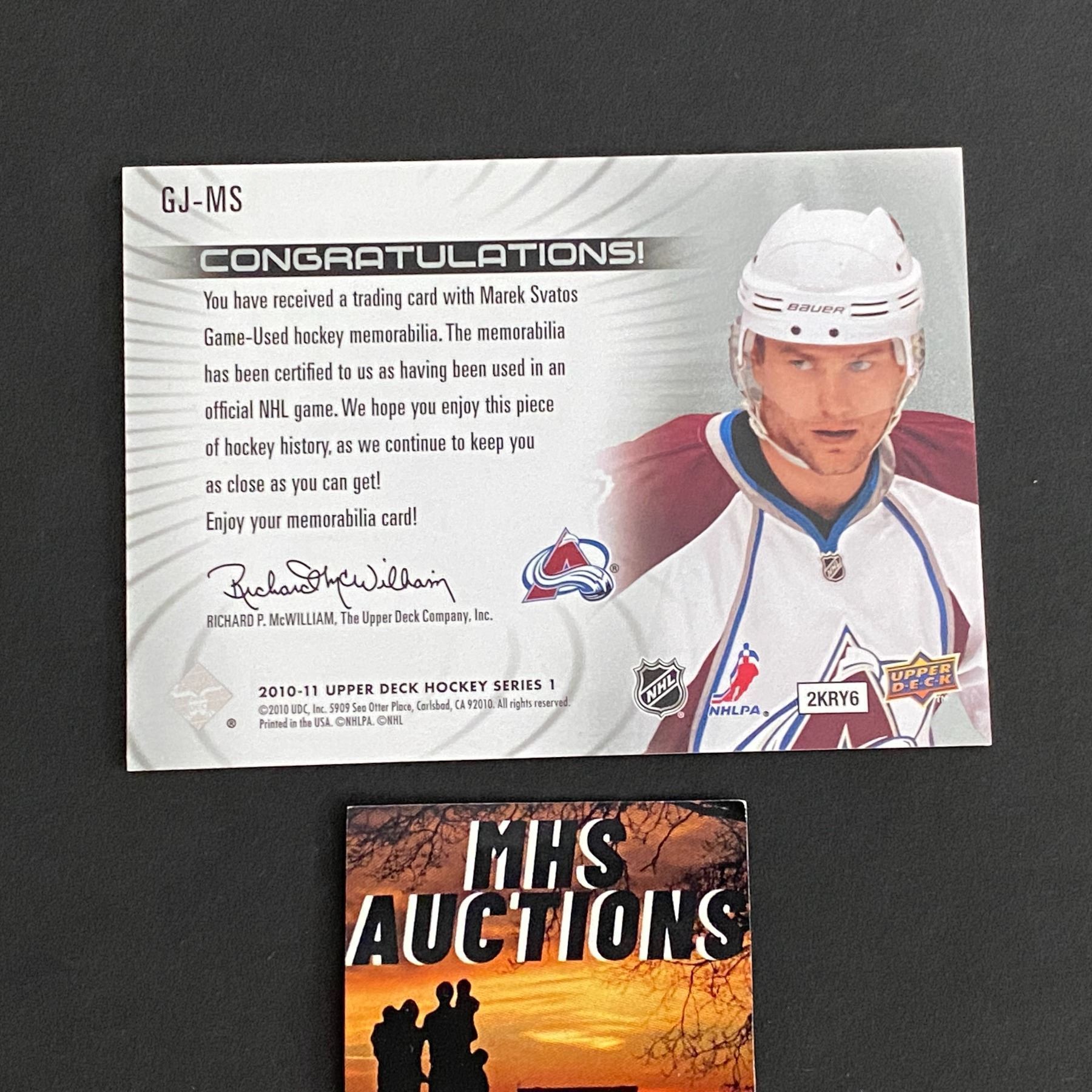 2010-11 U.D SERIES 1 HOCKEY MAREK SVATOS JERSEY CARD