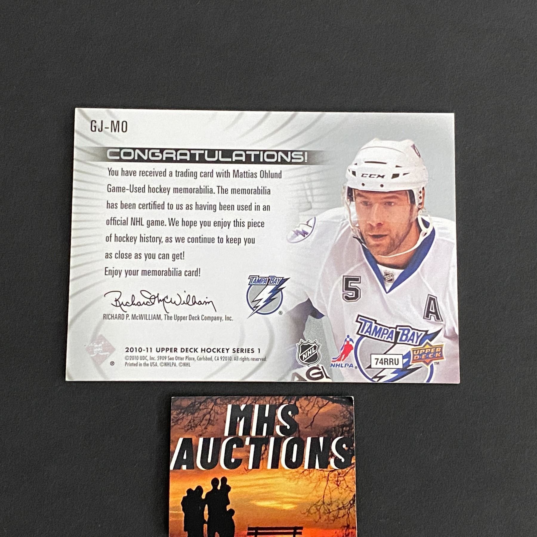 2010-11 U.D SERIES 1 HOCKEY MATTIAS OHLUND JERSEY CARD