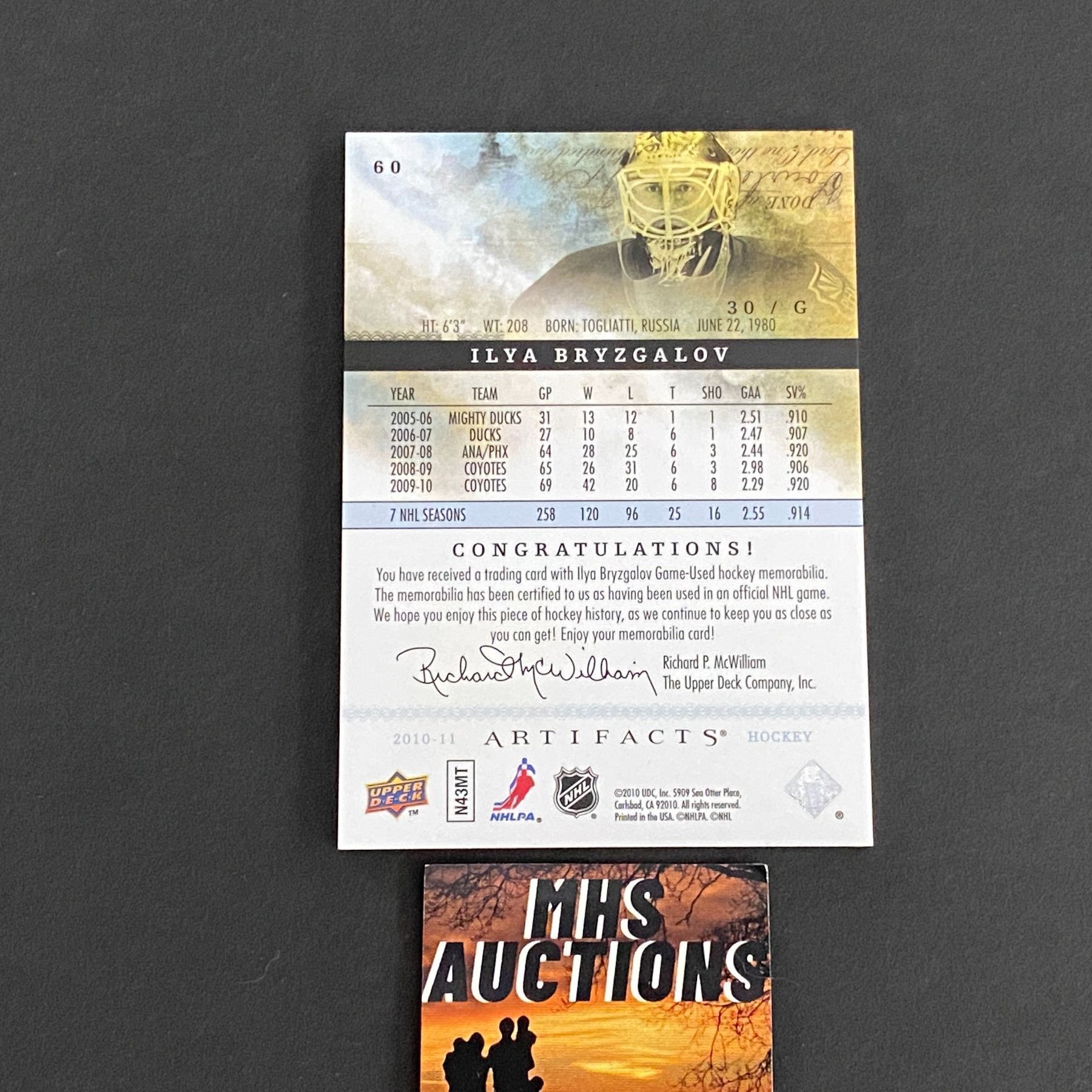 2010-11 UPPER DECK ARTIFACTS ILYA BRYZGALOV DUAL PATCH/JERSEY CARD ONLY 50 MADE