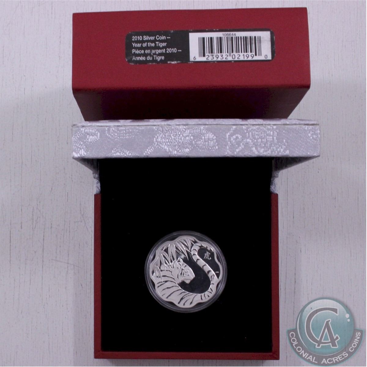 2010 $15 Silver Lunar Lotus Year of the Tiger (1st in series). Coin comes encapsulated in a display case with the outer sleeve.