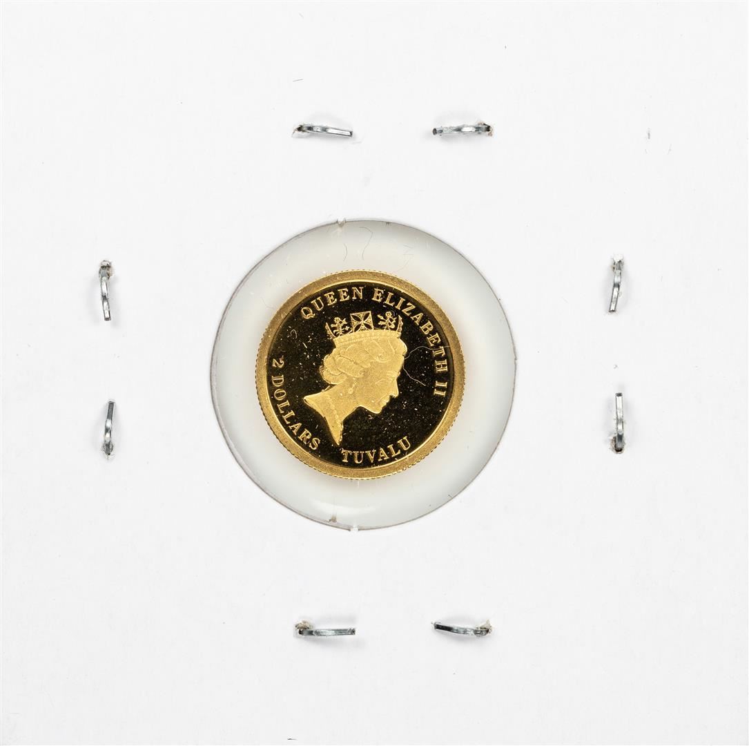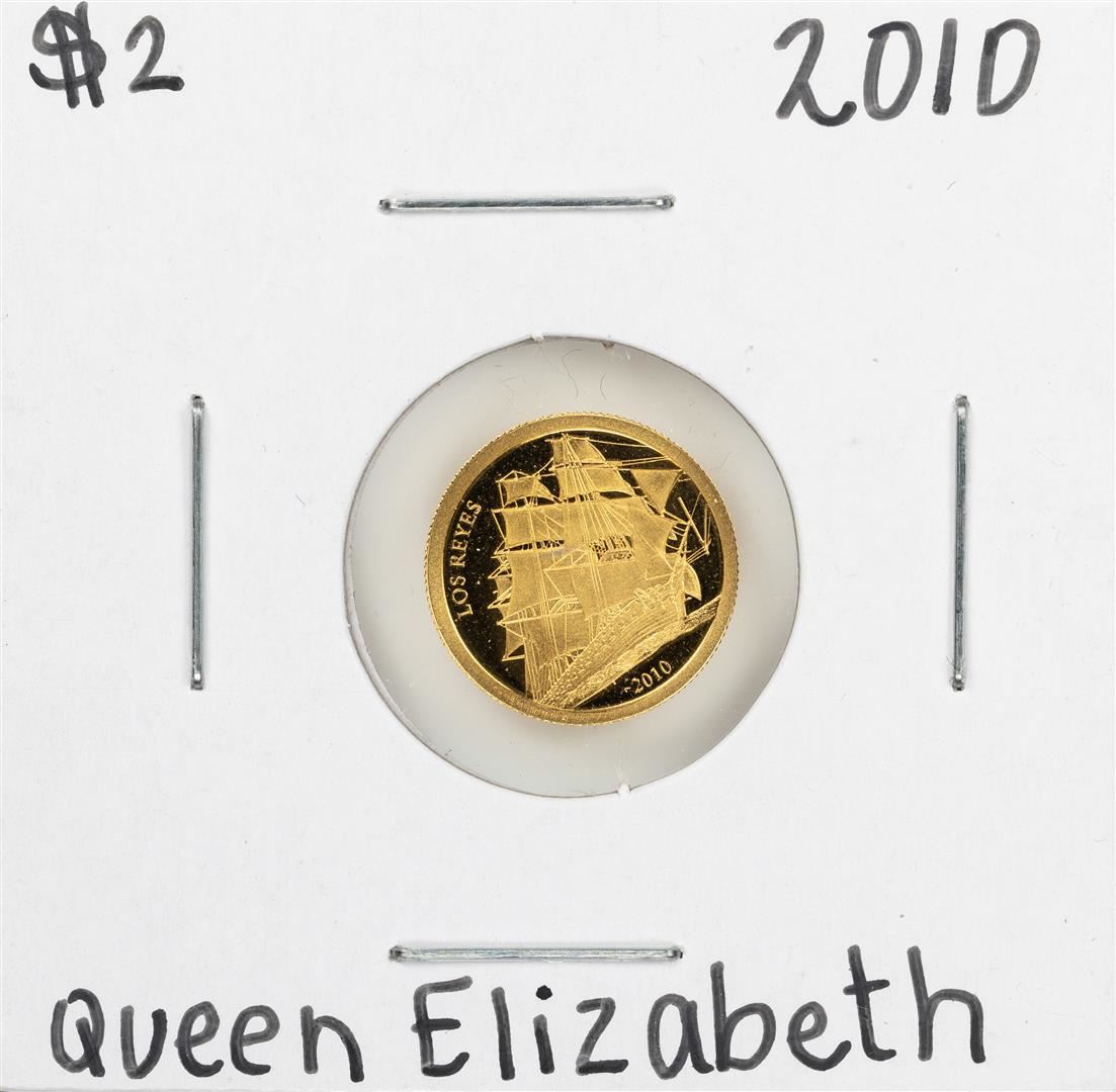 One 2010 $2 Tuvalu Queen Elizabeth II Los Reyes Gold Coin.