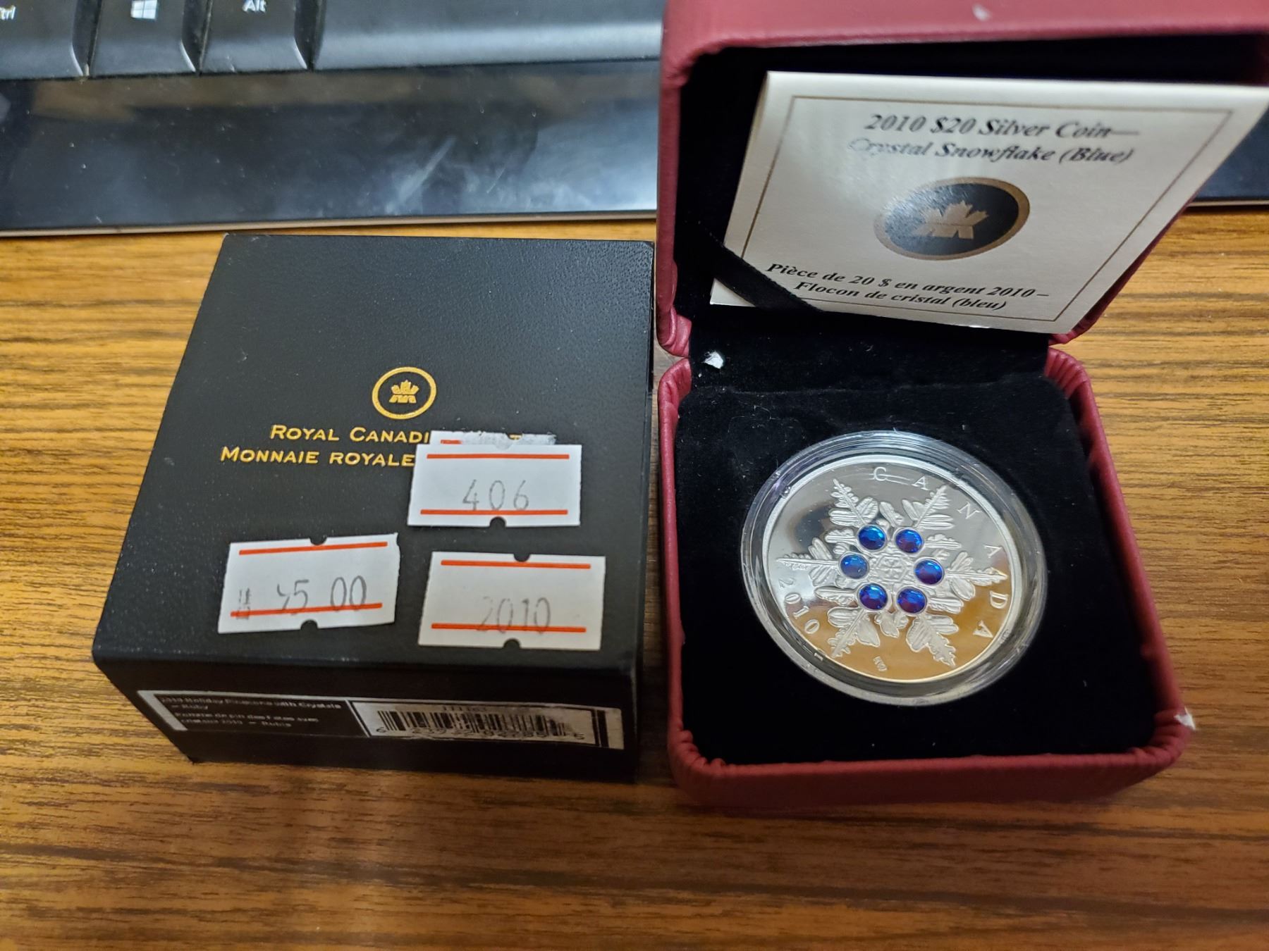 2010 $20 FINE SILVER COIN 'BLUE CRYSTAL SNOWFLAKE'