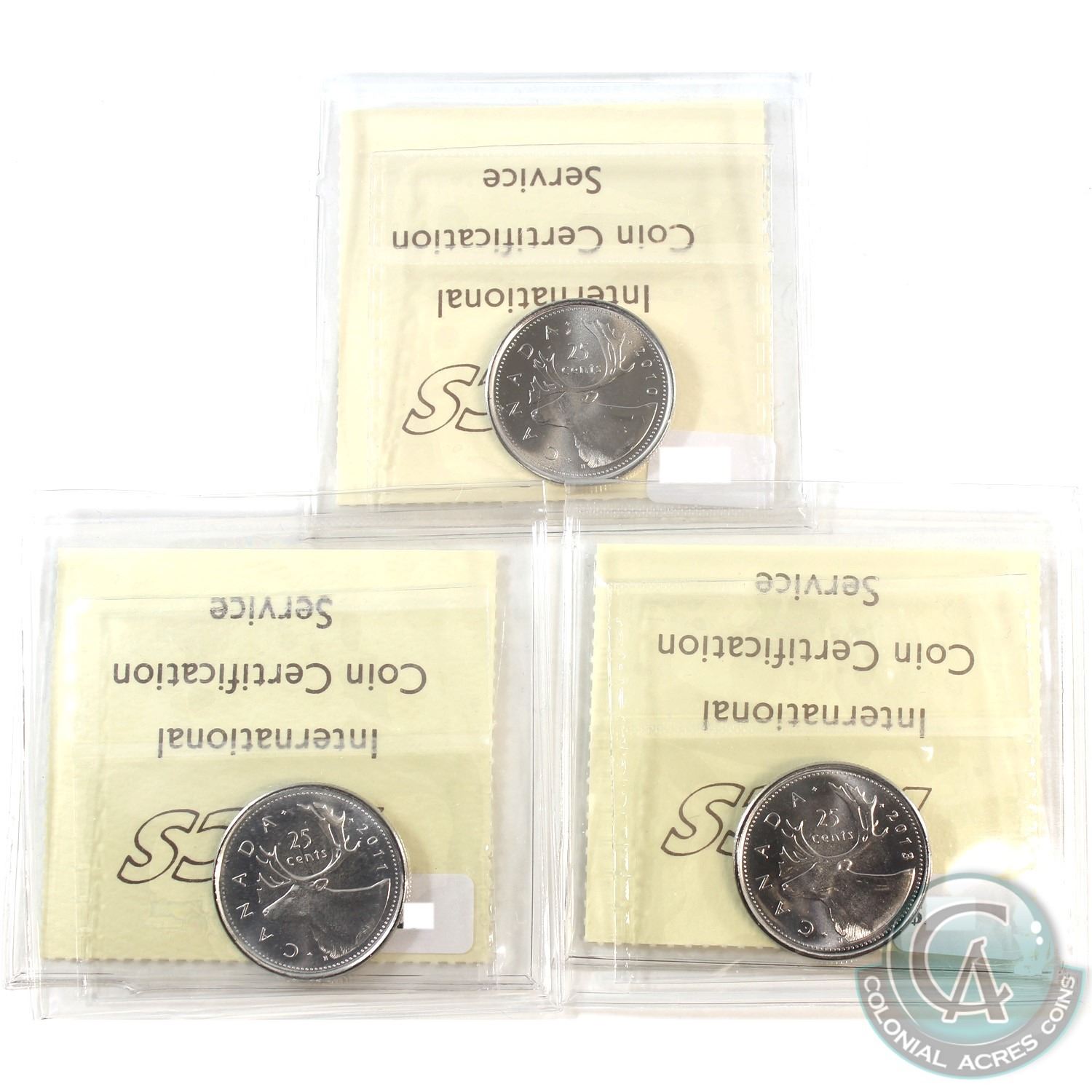 2010,2011 & 2013 Canada 25-cent ICCS Certified MS-67. 3pcs