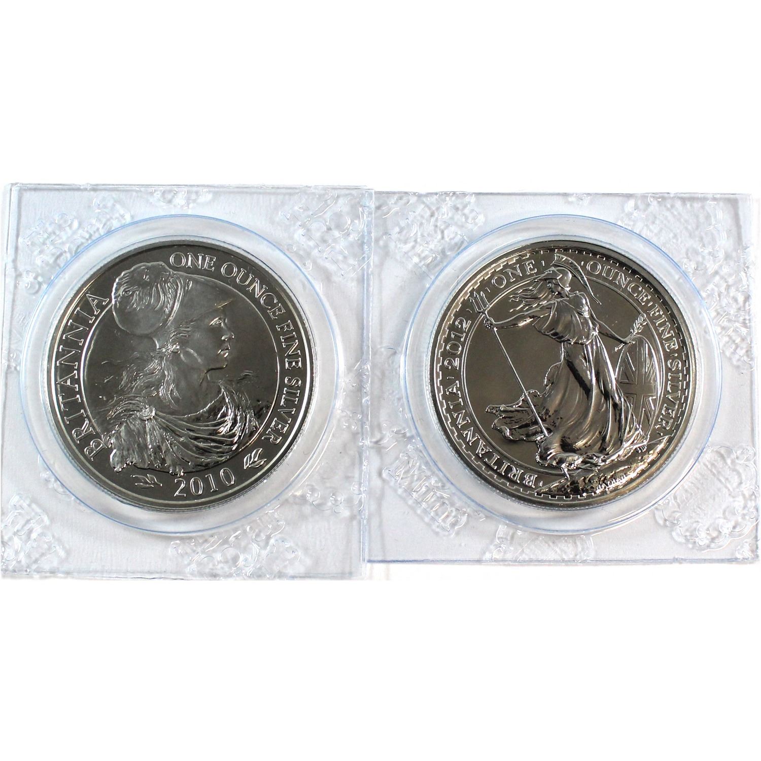 2010 & 2012 Great Britain 2-Pound Britannia Fine Silver Coins (Tax Exempt). 2pcs.