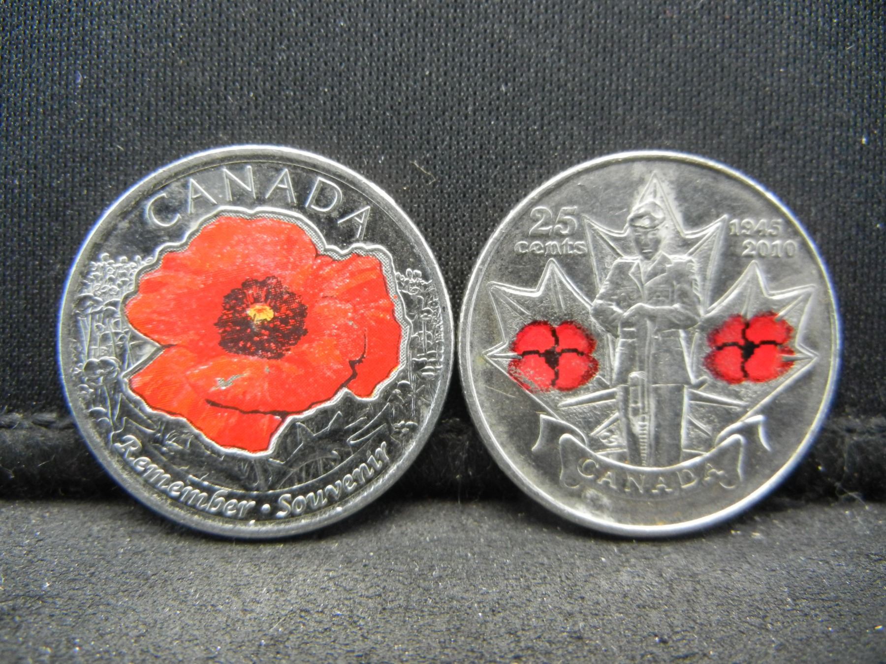 2010 & 2015 Quarter from Canada "Remembrance Day Poppy"