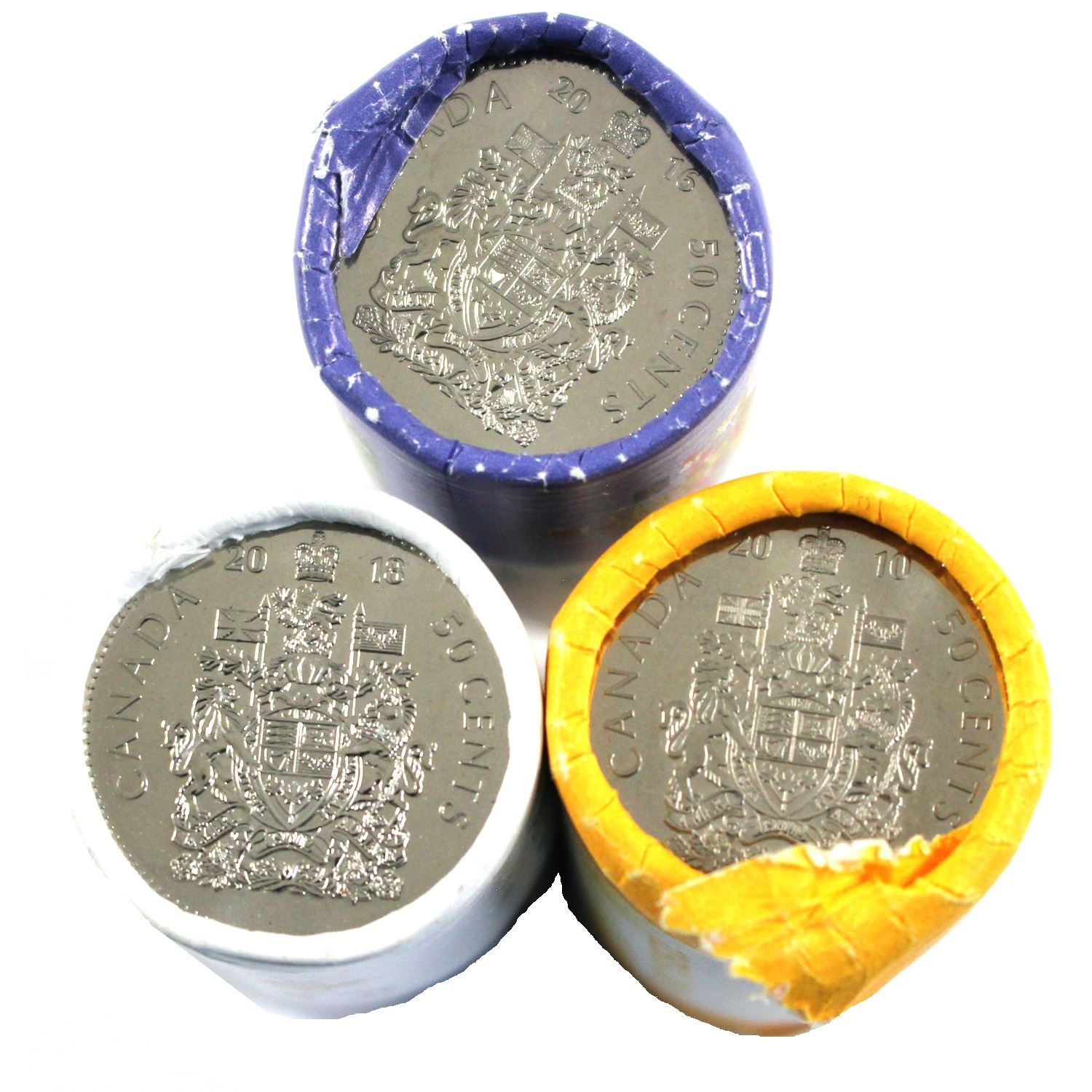 2010, 2016 & 2018 Canada 50-cent Original rolls. 3pcs