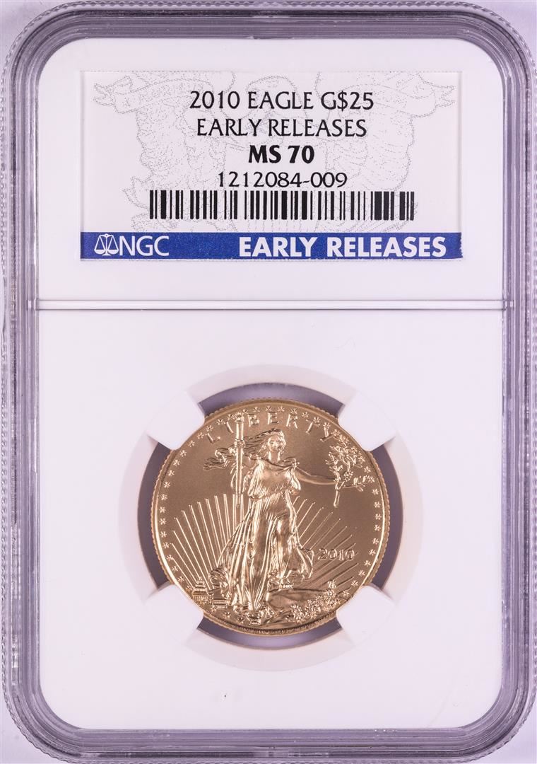 One 2010 $25 American Gold Eagle Coin NGC MS70 Early Releases. NGC Certified.