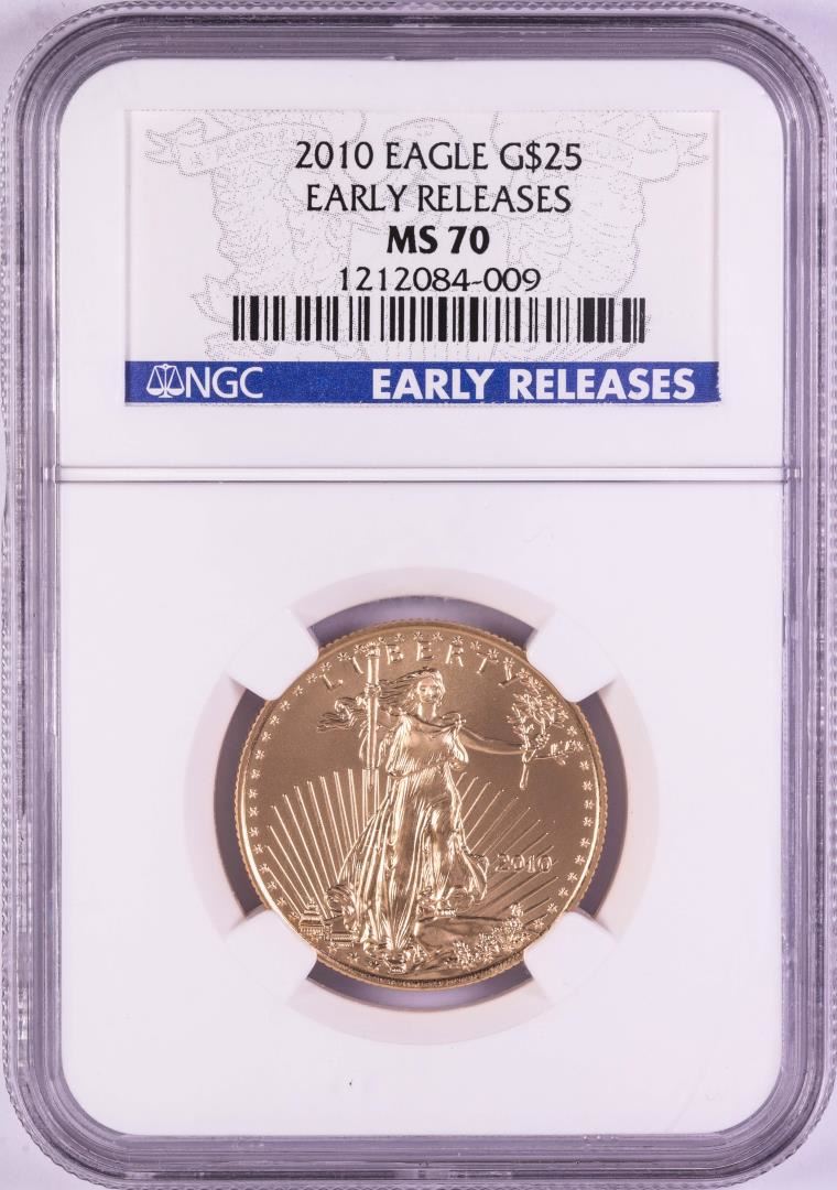 One 2010 $25 American Gold Eagle Coin NGC MS70 Early Releases. NGC Certified.