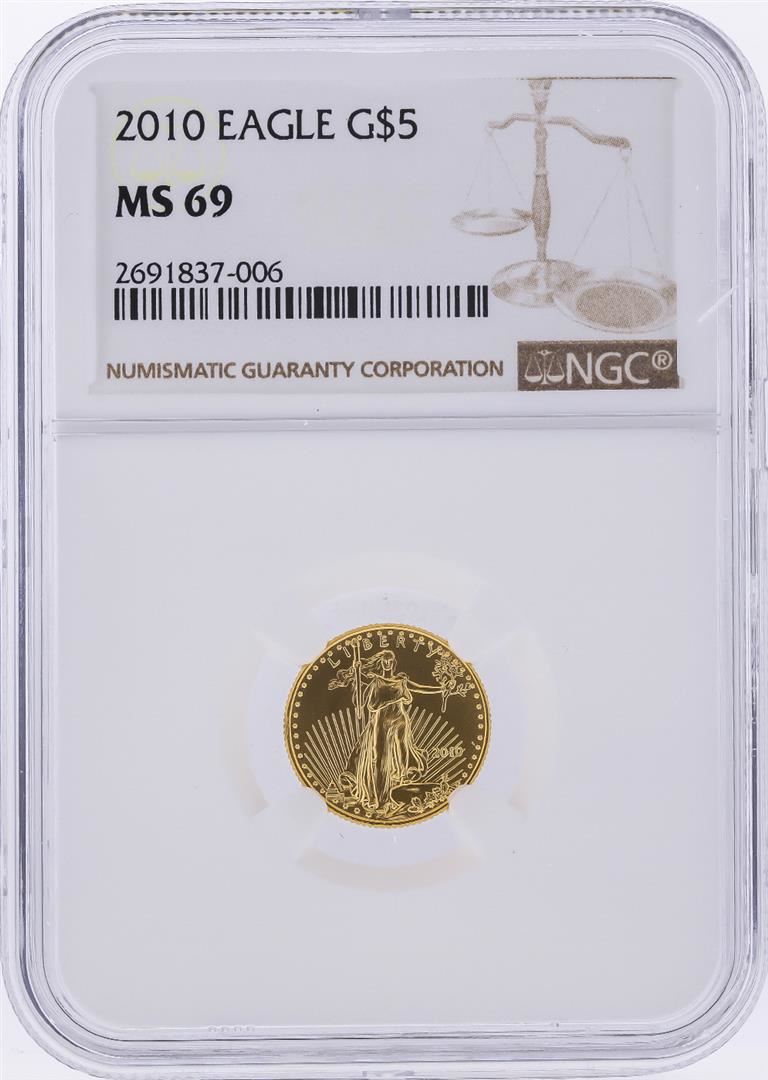 One 2010 $5 American Gold Eagle Coin NGC Graded MS69. NGC Certified.