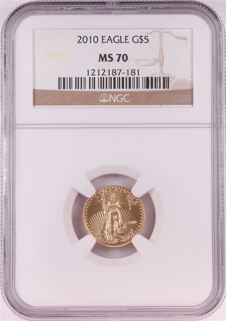 One 2010 $5 American Gold Eagle Coin NGC MS70. NGC Certified.