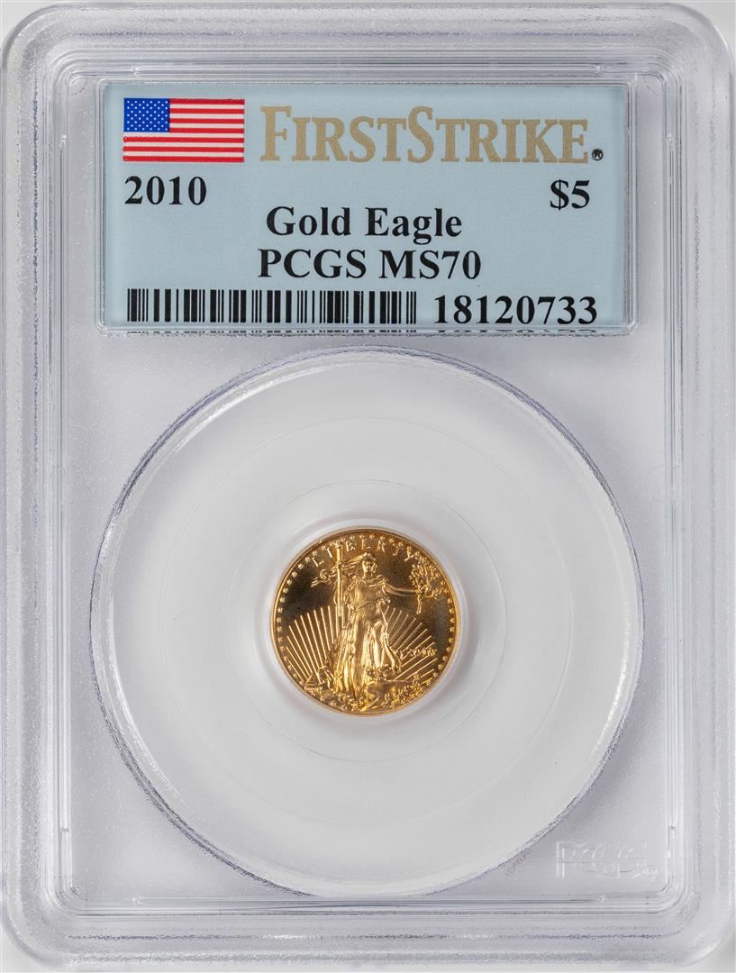 One 2010 $5 American Gold Eagle Coin PCGS MS70 First Strike. PCGS Graded.
