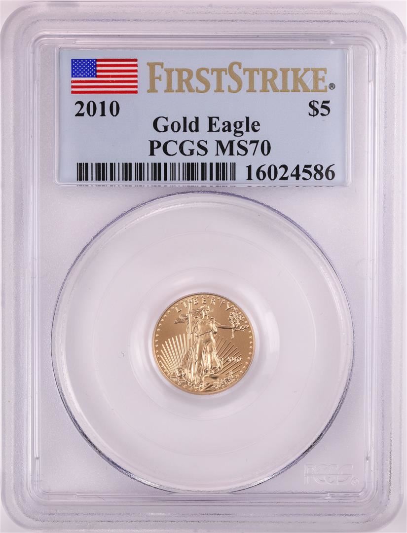 One 2010 $5 American Gold Eagle Coin PCGS MS70 First Strike. PCGS Graded.