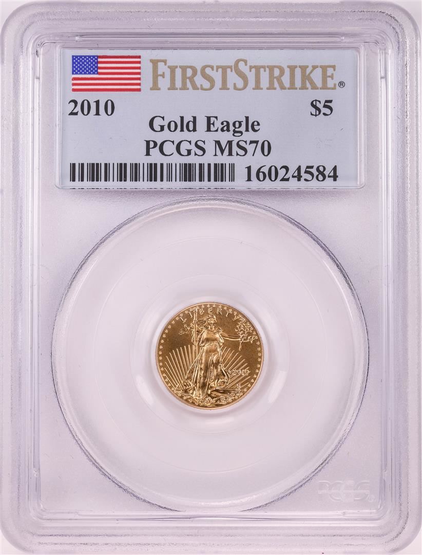One 2010 $5 American Gold Eagle Coin PCGS MS70 First Strike. PCGS Graded.