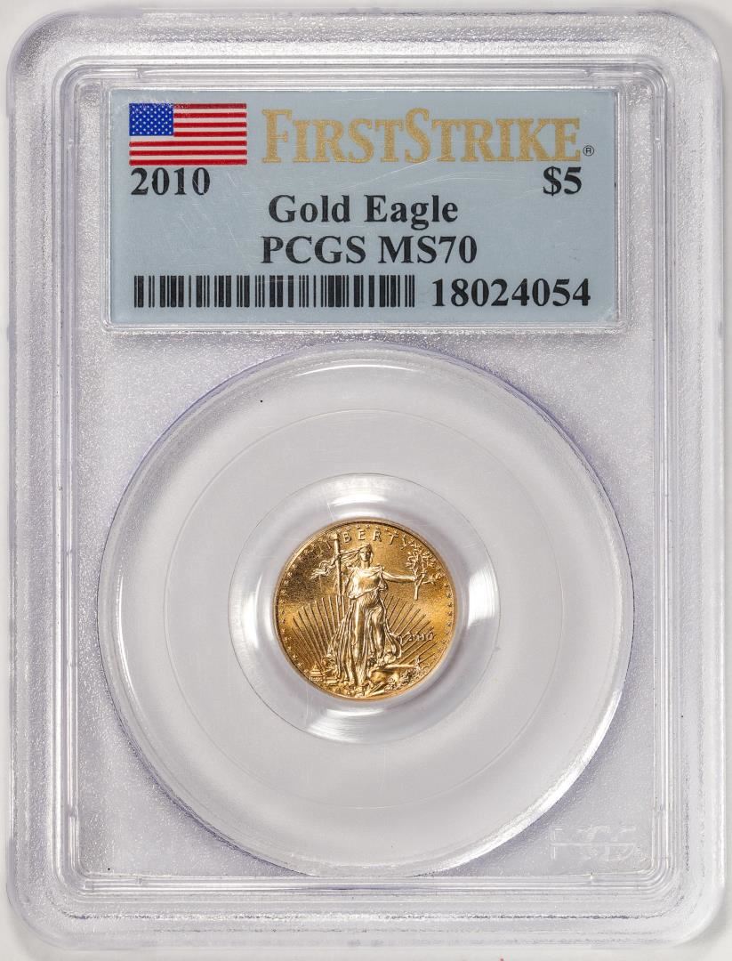 One 2010 $5 American Gold Eagle Coin PCGS MS70 First Strike. PCGS Graded.