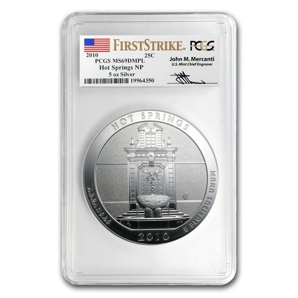 2010 5 oz Silver ATB Hot Springs MS-69 DMPL FS PCGS Joh **|**|** 2010 5 oz Silver ATB Hot Springs MS-69 DMPL FS PCGS John Mercanti ; MSRP: $700
