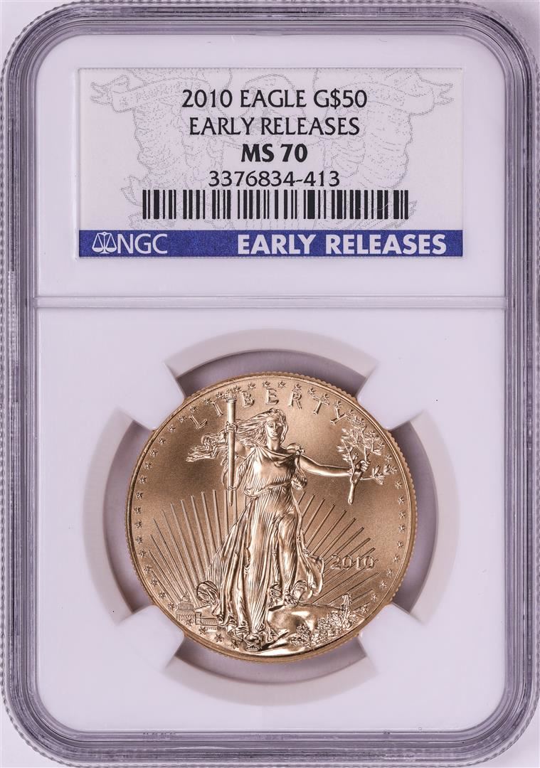 One 2010 $50 American Gold Eagle Coin NGC MS70 Early Releases. NGC Certified.