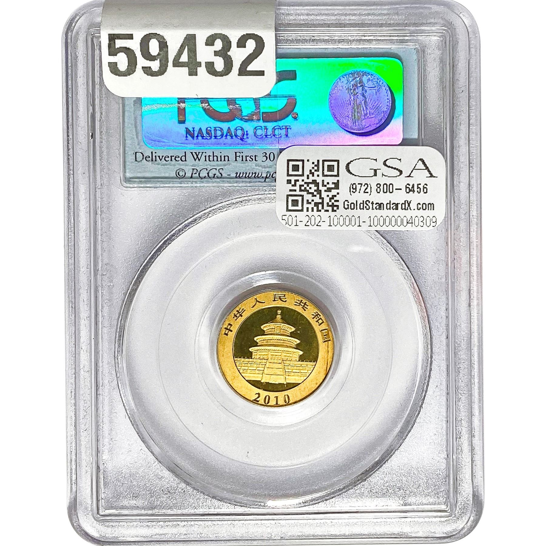 2010 50 Yuan China Panda Gold PCGS MS70