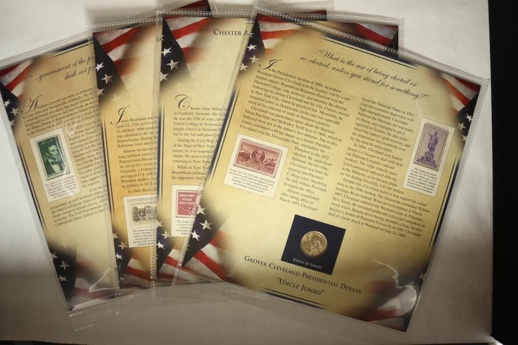 CHESTER A. ARTHUR AND 2012 GROVER CLEVELAND UNC PRESIDENTIAL DOLLARS AND STAMPS SETS
