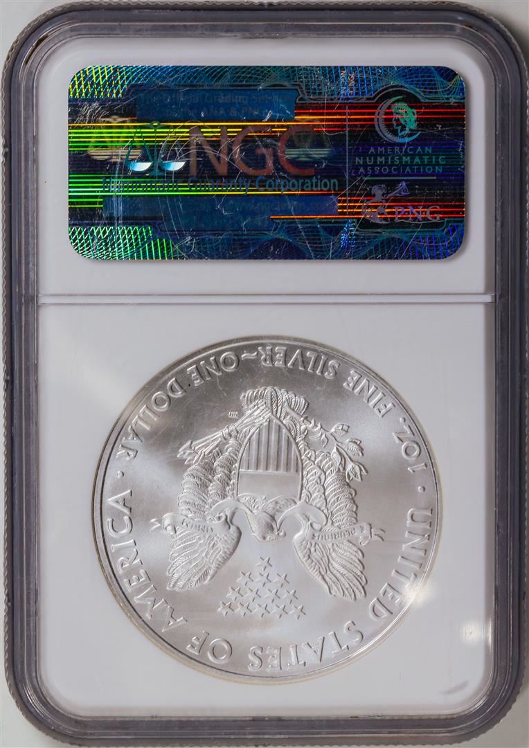 One 2010 American Silver Eagle .999 Fine Silver Dollar Coin NGC MS70.