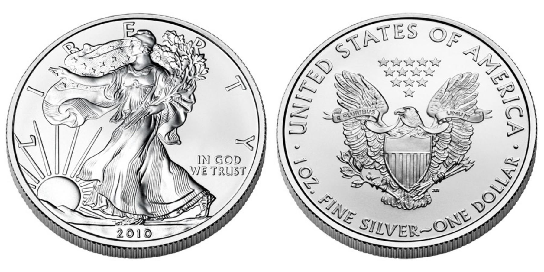 One 2010 American Silver Eagle .999 Fine Silver Dollar Coin.