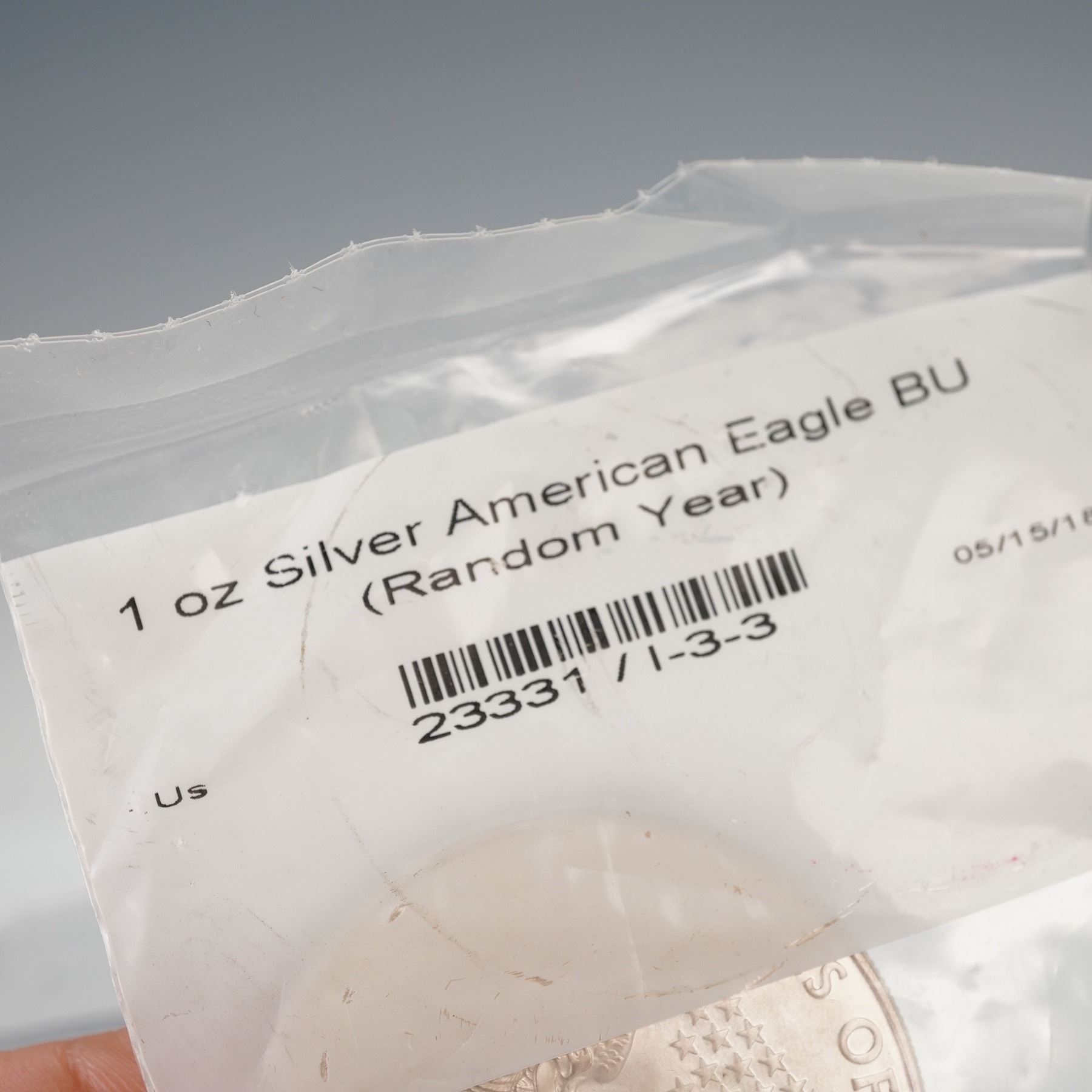 The American Silver Eagle is the official silver bullion coin of the United States, first released by the U.S. Mint in 1986. Struck in one troy ounce of .999 fine silver, this coin bears the iconic Walking Liberty design on the obverse, depicting Lady Liberty draped in the American flag with her right arm extended and branches of laurel and oak in her left hand. The rising sun appears at her feet, symbolizing hope and renewal. The inscriptions include LIBERTY, IN GOD WE TRUST, and the date 2010. The reverse, features a heraldic eagle behind a shield, clutching an olive branch and arrows, with thirteen stars above representing the original colonies. Surrounding inscriptions read UNITED STATES OF AMERICA, 1 OZ FINE SILVER, and ONE DOLLAR. This coin was struck by the West Point Mint (W). Metal Content: One troy ounce of .999 fine silver.