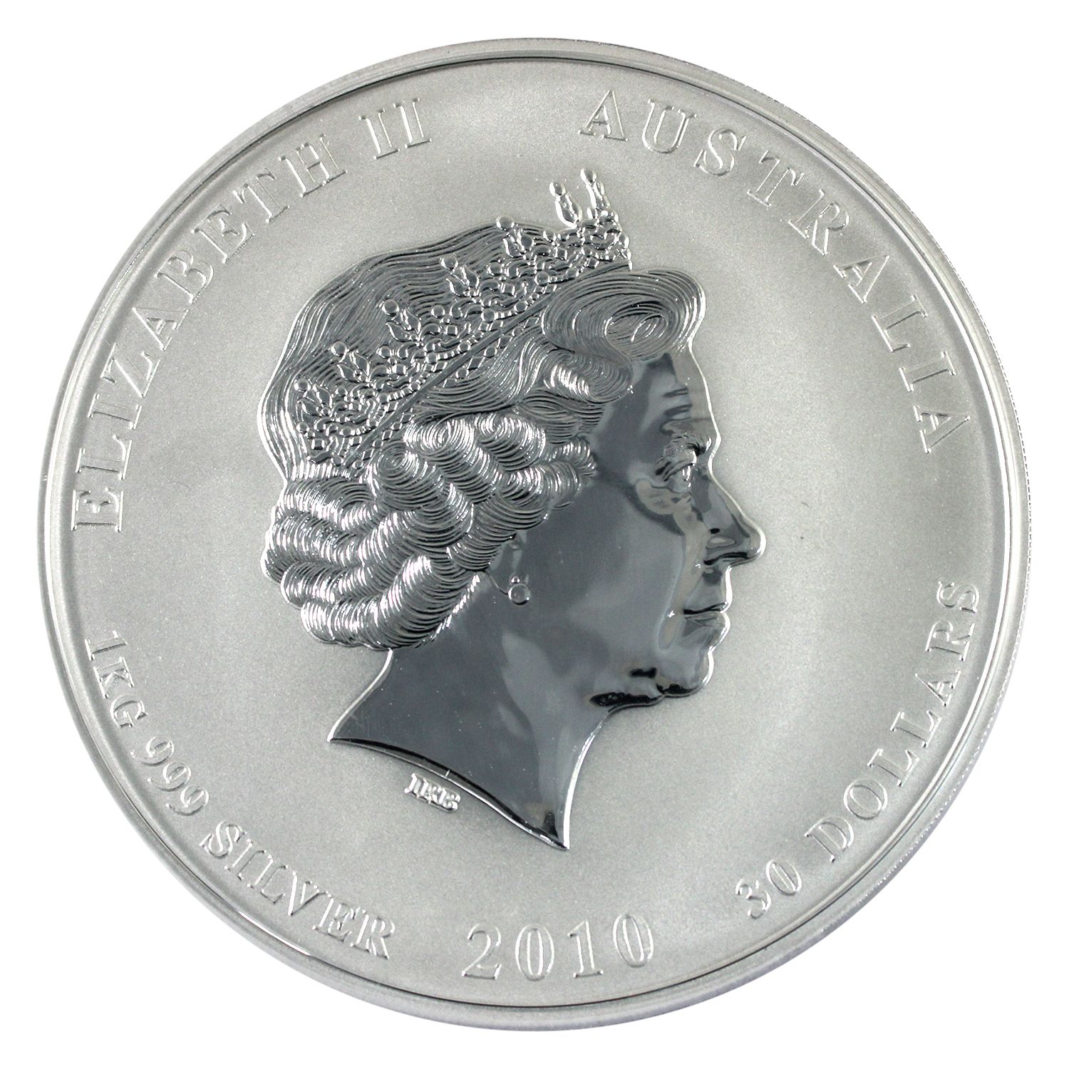 2010 Australia $30 Year of the Tiger 1 Kilo .999 Fine Silver Coin. Lightly scratched capsule (Tax Exempt)