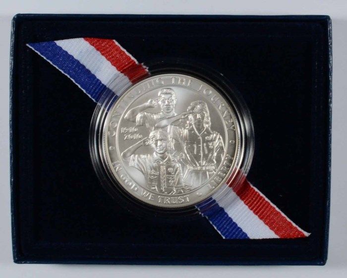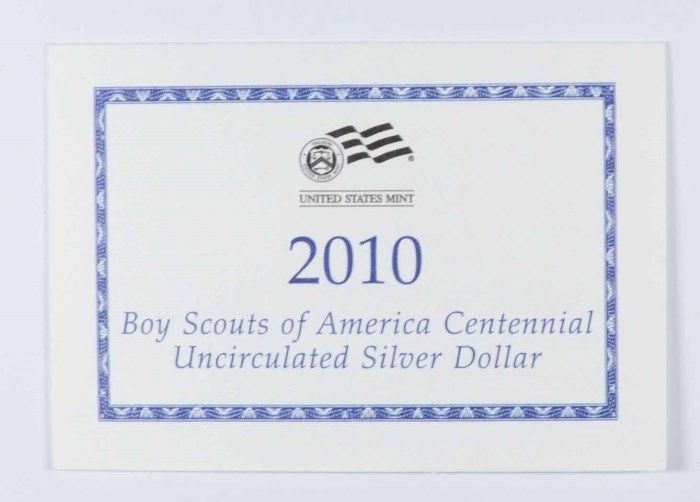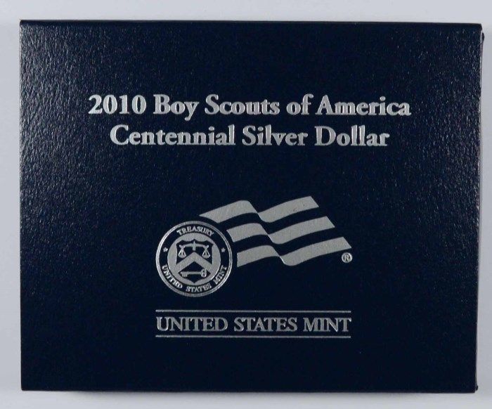 2010 BOY SCOUTS CENTENNIAL UNCIRCULATED COMMEMORATIVE SILVER DOLLAR, NICE OGP