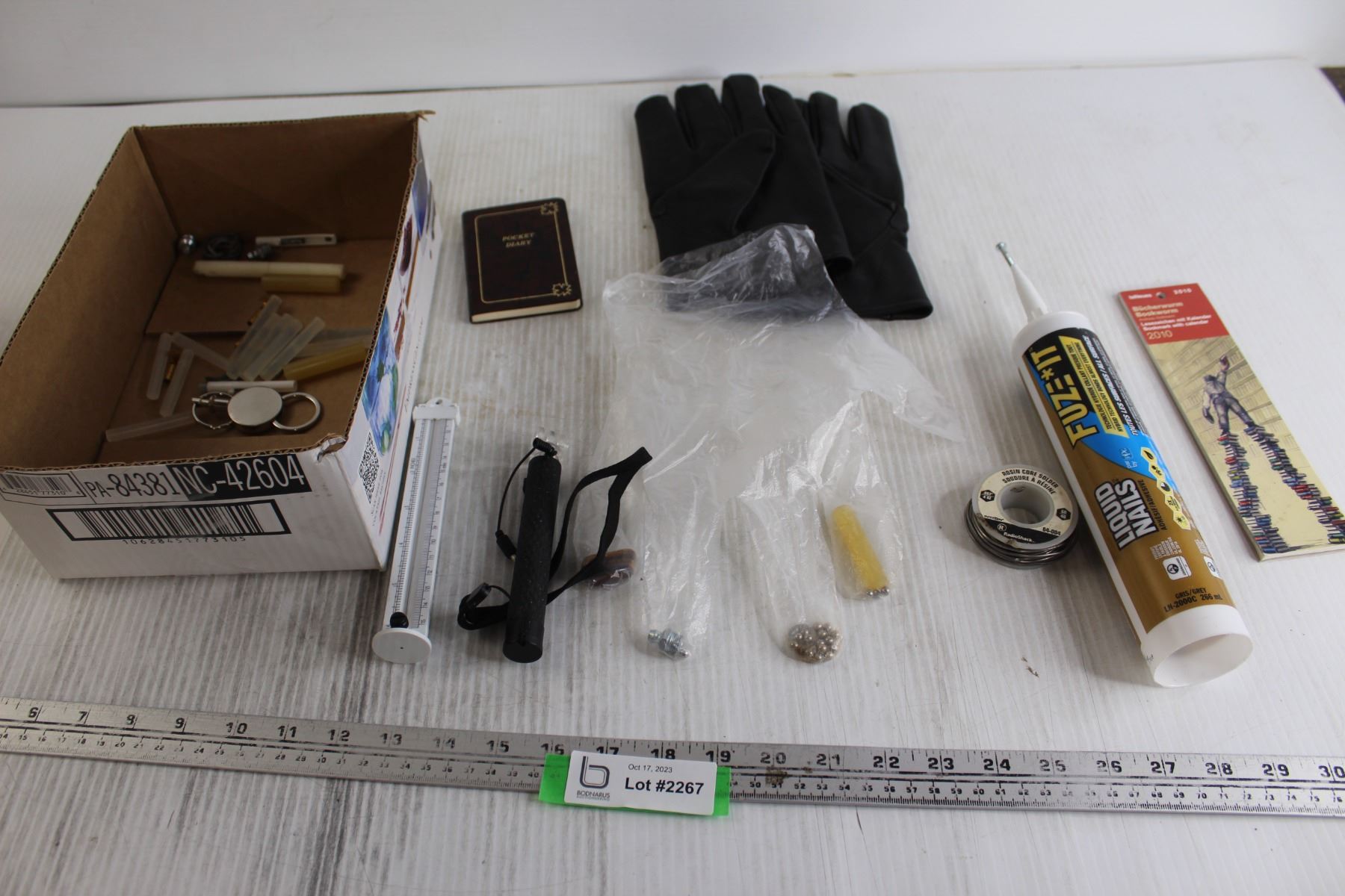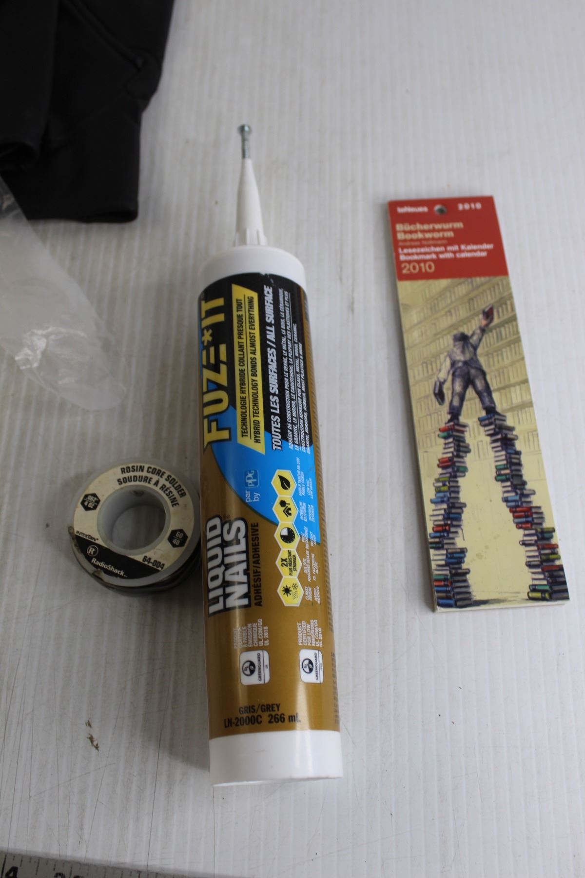 2010 Bookmark Calendar, (5+) Mini Hot Glue Sticks, (2) Gloves, Misc.
